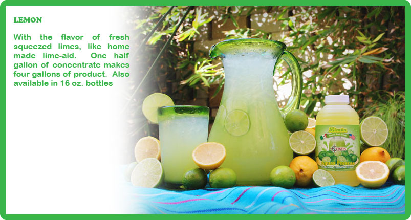 Horchata, Jamaica, Tamarindo, Pineapple, Lemon, Mango, Strawberry, Melon and Guayaba.